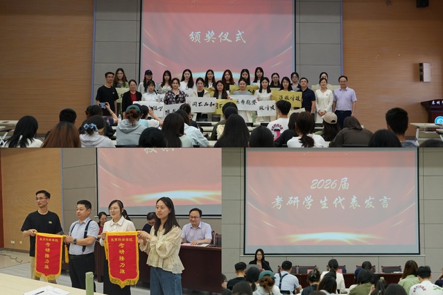 为表彰先进典型,营造浓厚的考研氛围,5月28日下午,我院在胡瑗讲堂举办2025届考研表彰暨2026届考研动员会。学院领导、教师代表、辅导员、2025届考研升学学生及2026届备考学生参加,会议由院党总支副书记、副院长孙晓敏主持。