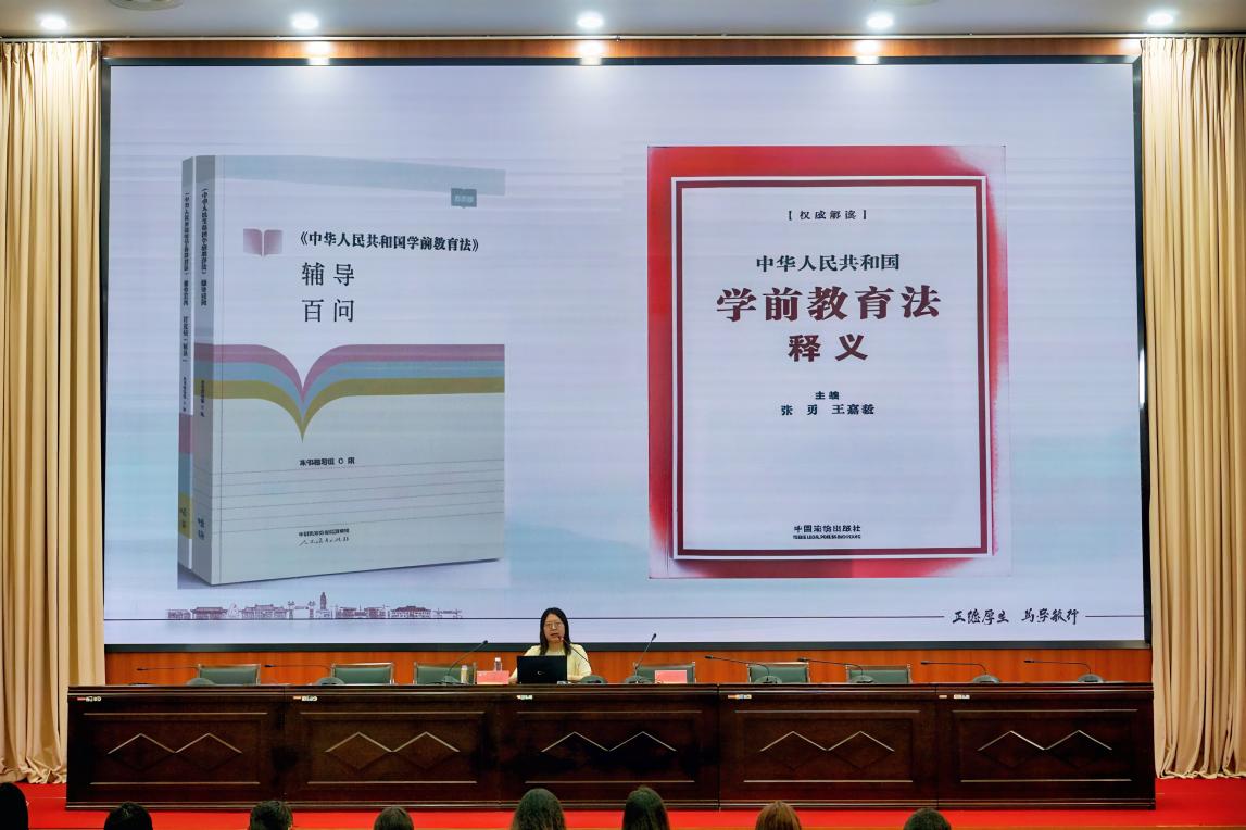 王海英结合自身学术研究与政策实践,系统拆解学前教育法内容,以专业视角对比大陆法系与英美法系差异,明晰法律渊源构成,为理解学前教育法筑牢法理根基。从核心条款到突破亮点,她精准阐释立法如何回应行业痛点,为学前教育发展架梁护航。她还援引案例、结合研究经验,给予专业解答,让法条文本真正落地实践。同时,作为中国学前教育研究会家庭与社会教育专业委员会成员,聚焦政府、幼儿园、教师职责,明确“应为”与“不为”边界,将理论解读与实践应用深度此次讲座,借助专业解读,为学前教育行业注入法治力量,助力行业循法前行,以学术深度与实践温度,守护童年美好,推动学前教育事业在法治轨道上高质量发展。