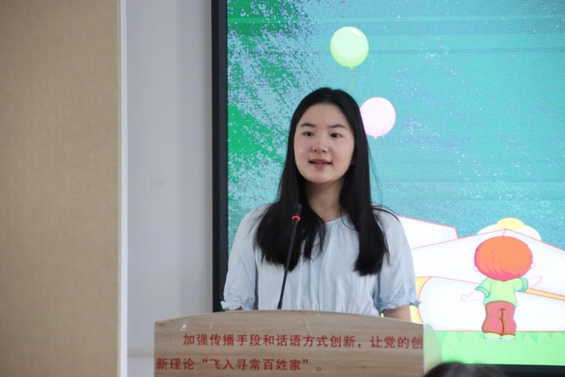我院学生代表发言,她表示必将以躬行实践的热忱,充分发挥师范的专业特长,以暑托服务为起点,以青春之名,赴时代之约。